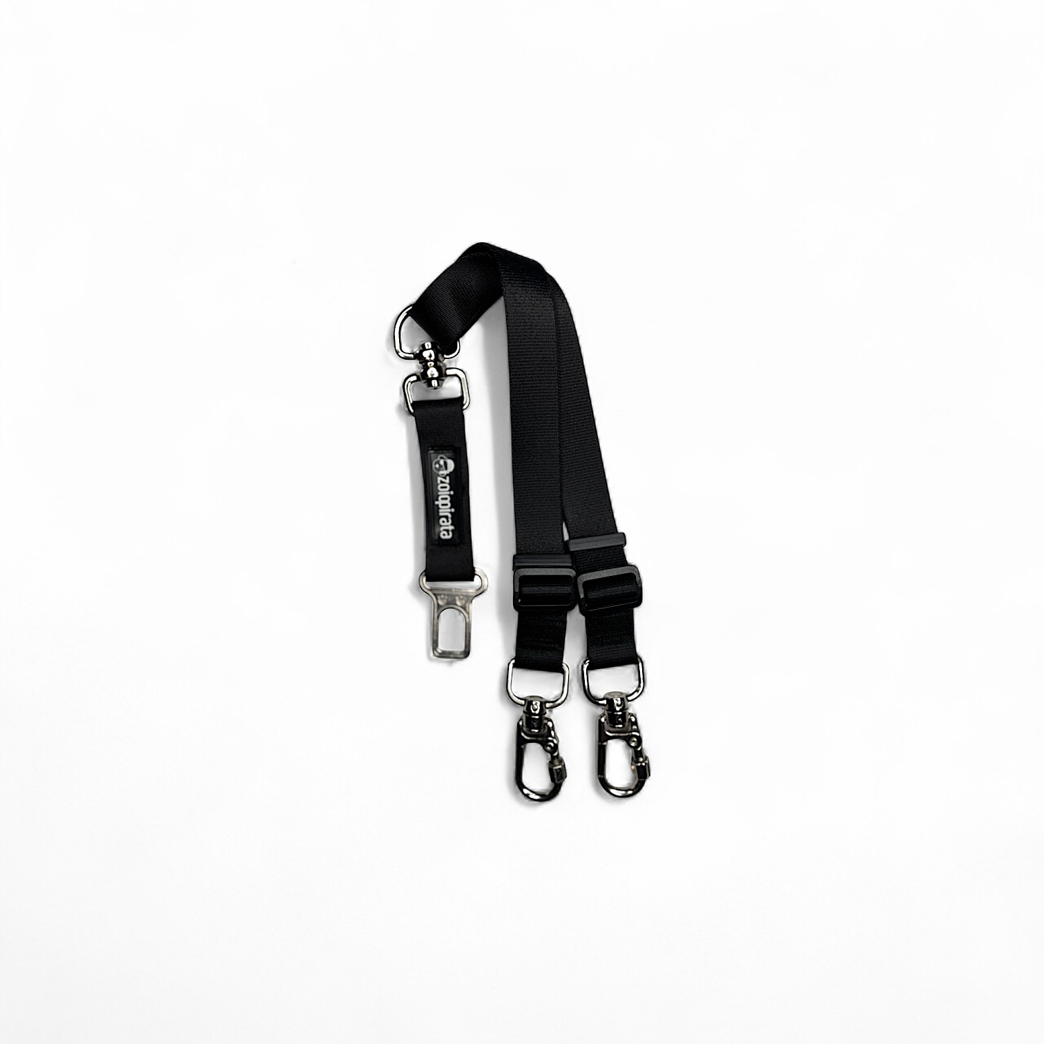 Cinto de Segurança Duplo para transporte de dois cães com segurança e conformidade com o Código de Trânsito Brasileiro. Possui duas fitas ajustáveis independentes, oferecendo regulagem ideal para cada animal.