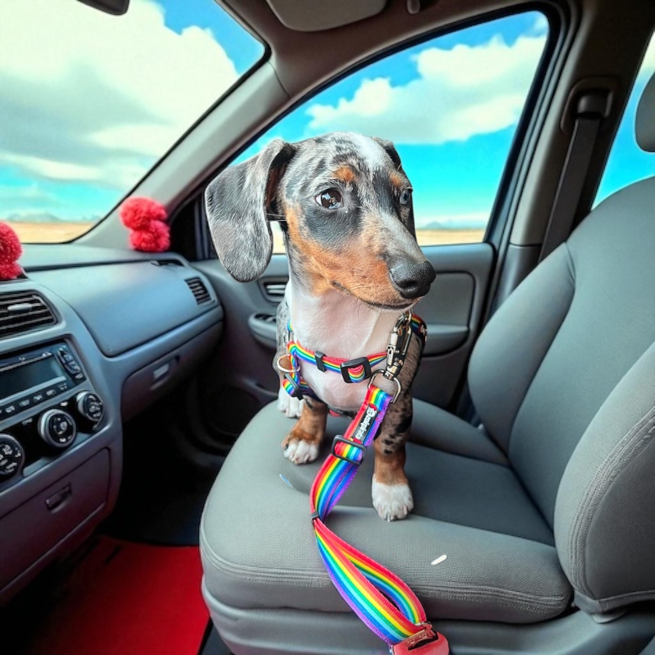 Cinto de Segurança para Pets desenvolvido para transporte seguro e dentro das normas do Código de Trânsito Brasileiro.